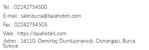 Baia Bursa Hotel Telefon Numaralari Ve Iletisim Bilgileri Oteliletisim Com