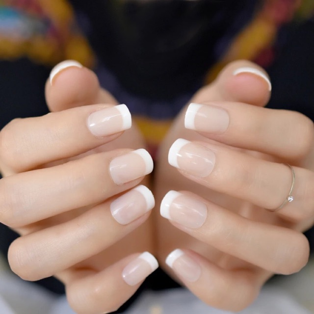 Shf Short Square French Nails Fake Nails Short Nails Nail Art Shopee Indonesia
