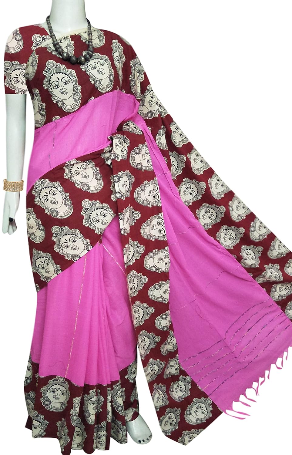 Buy Bursan Brown Pink Mulmul Cotton Saree With Khesh Featured With Durga Print At Amazon In