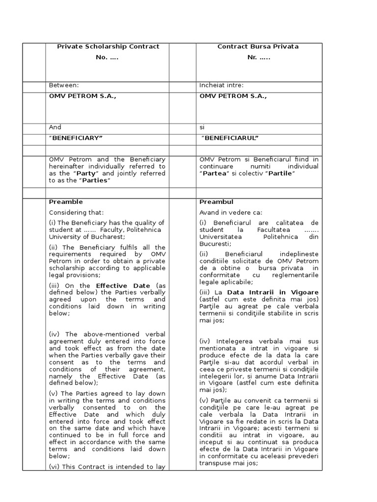 Contract Bursa Privata Omv Petrom Private Law Business